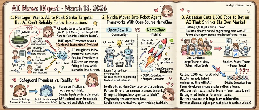 Rep. Sara Jacobs stated it directly: "AI tools aren't 100% reliable — they can fail in subtle ways." OpenAI's March publications quantify those subtle failures. A 5.9% residual error rate comes from controlled benchmarks with simple, scripted tasks. Battlefield data is neither simple nor scripted.